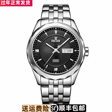 男表机械表防水镂空10270516精钢镶钻双历商务依波手表